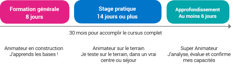 1. Une session de formation générale, qui vous permet d’acquérir les notions de bases pour assurer les fonctions d’animation (de 8 jours minimum)